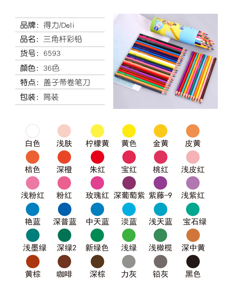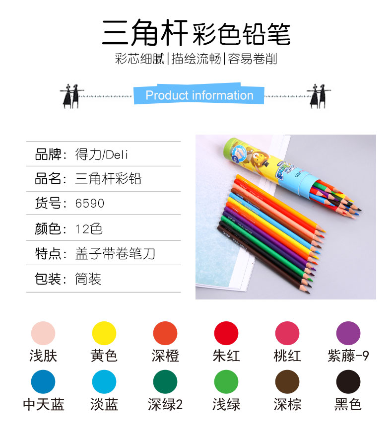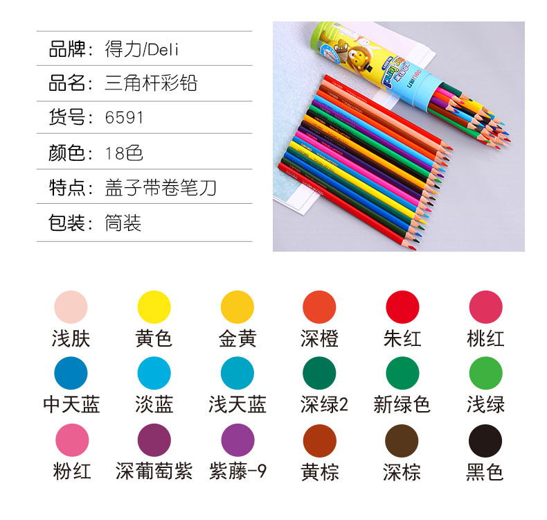 得力6591,18色彩色铅笔筒装儿童绘画学生美术绘画彩铅