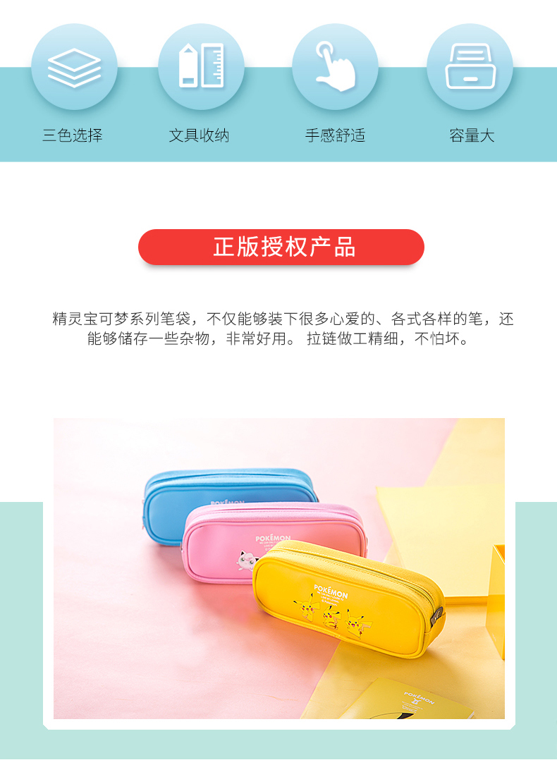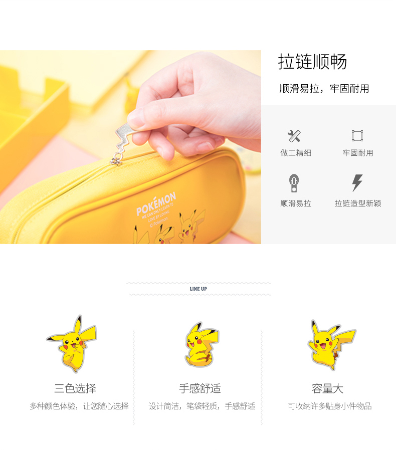 得力66731,皮卡丘系列笔袋文具袋铅笔袋卡通笔袋拉链袋