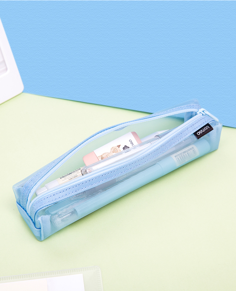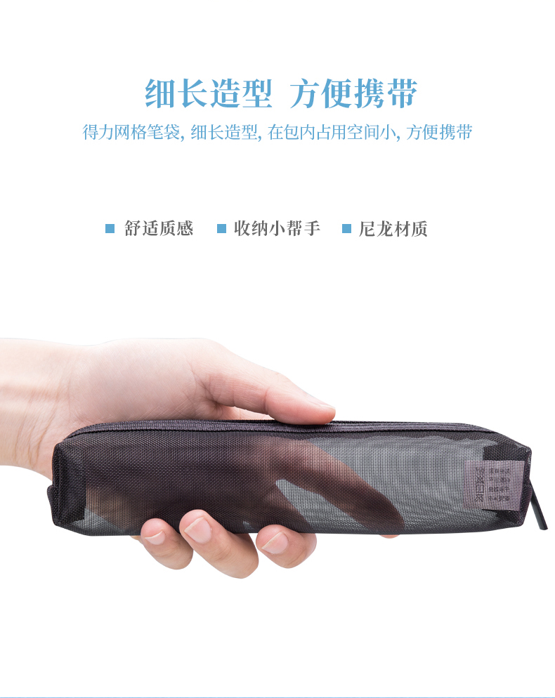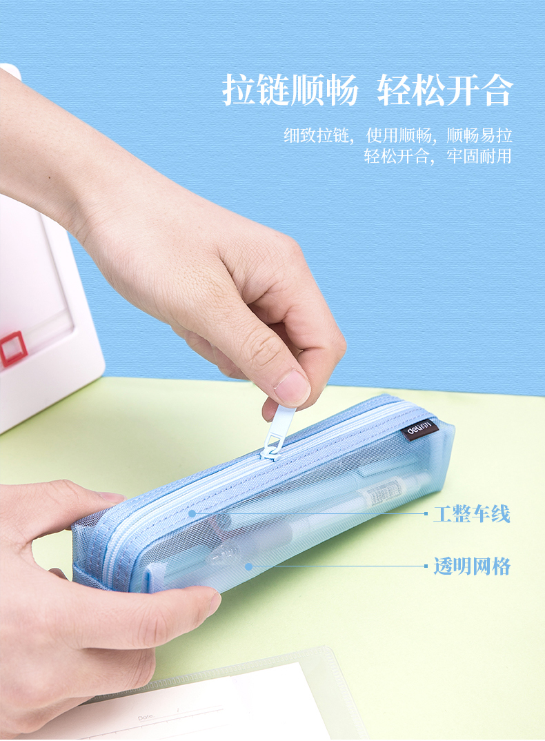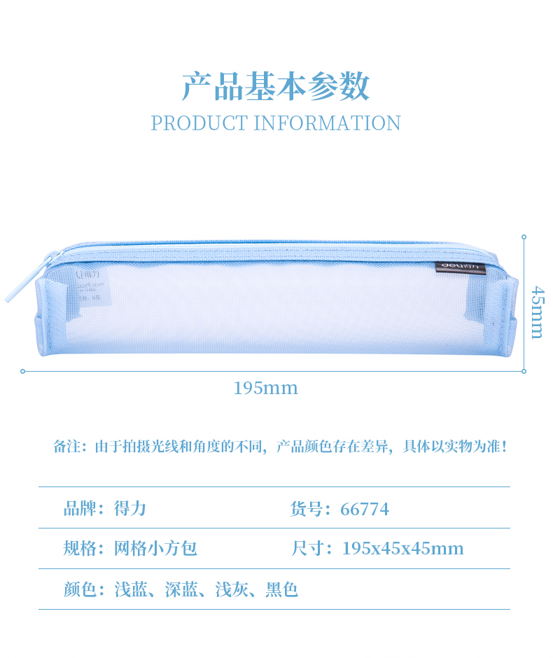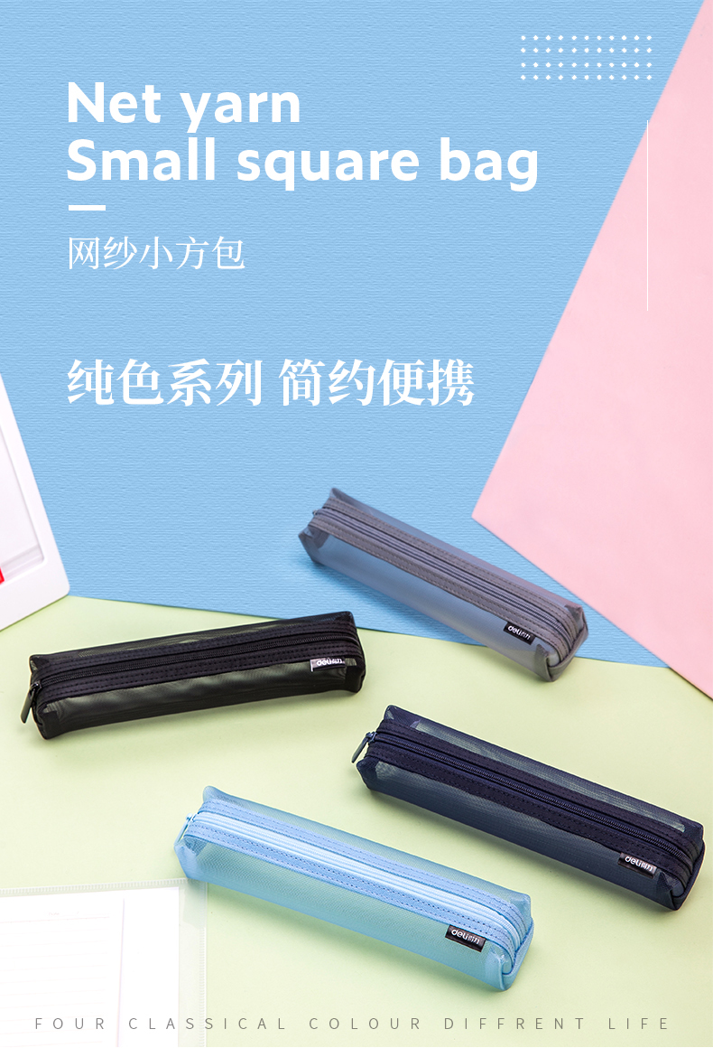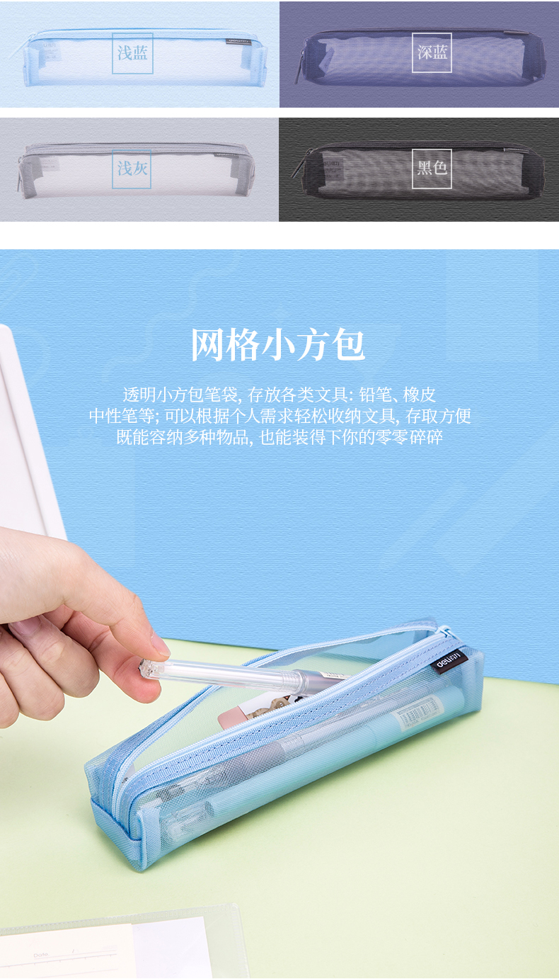 得力66774,网格小方包网纱笔袋初中高中学生可携带式纯色文...