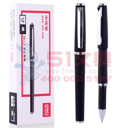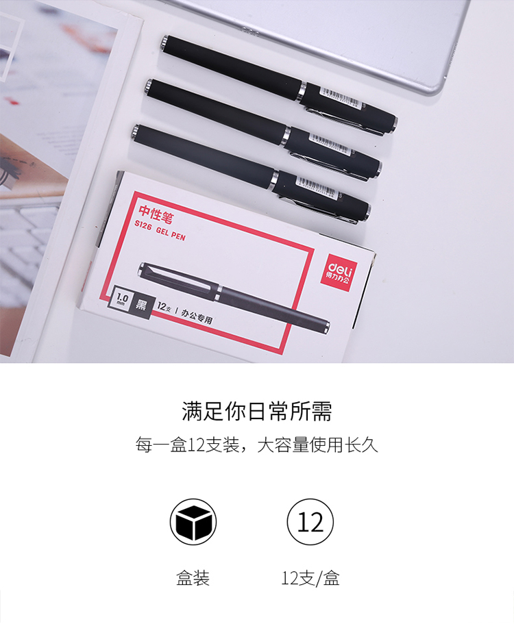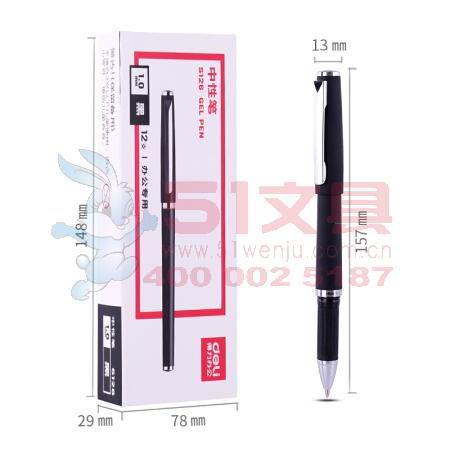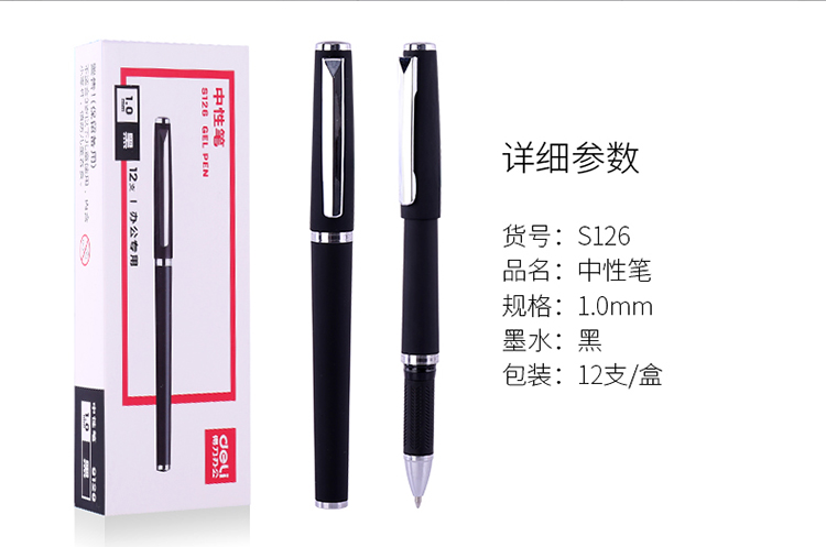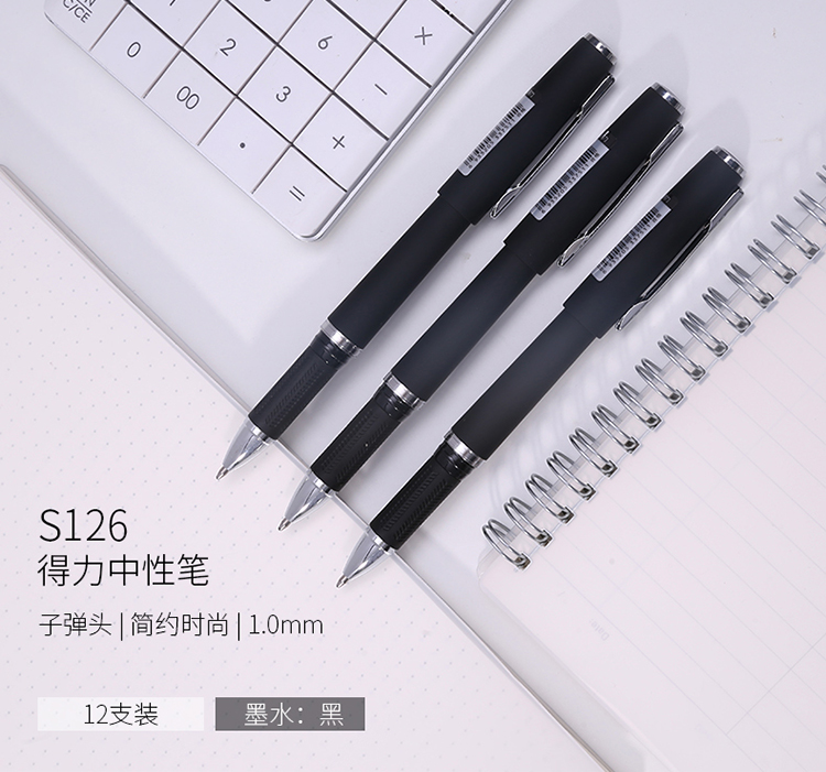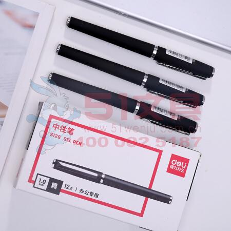 得力S126,1.0mm办公中性笔签字笔子弹头水笔-黑色