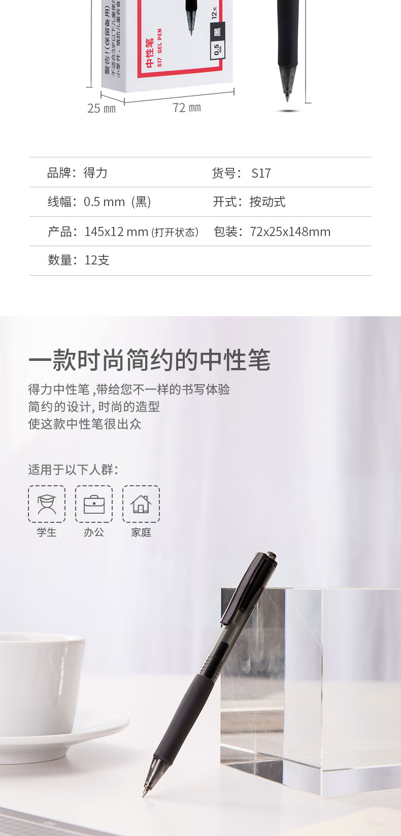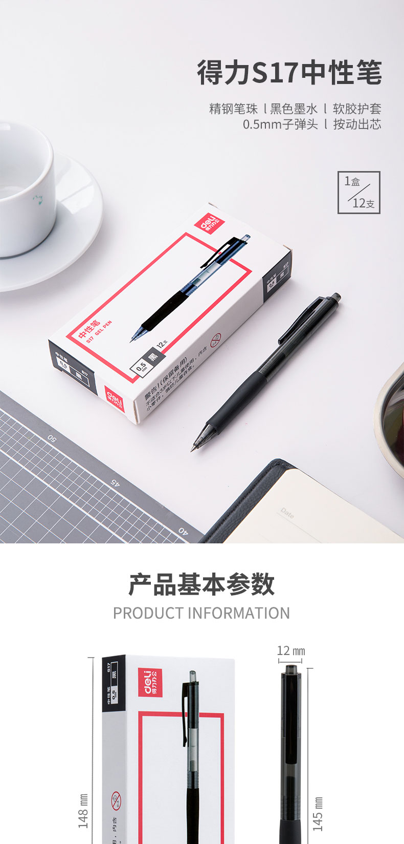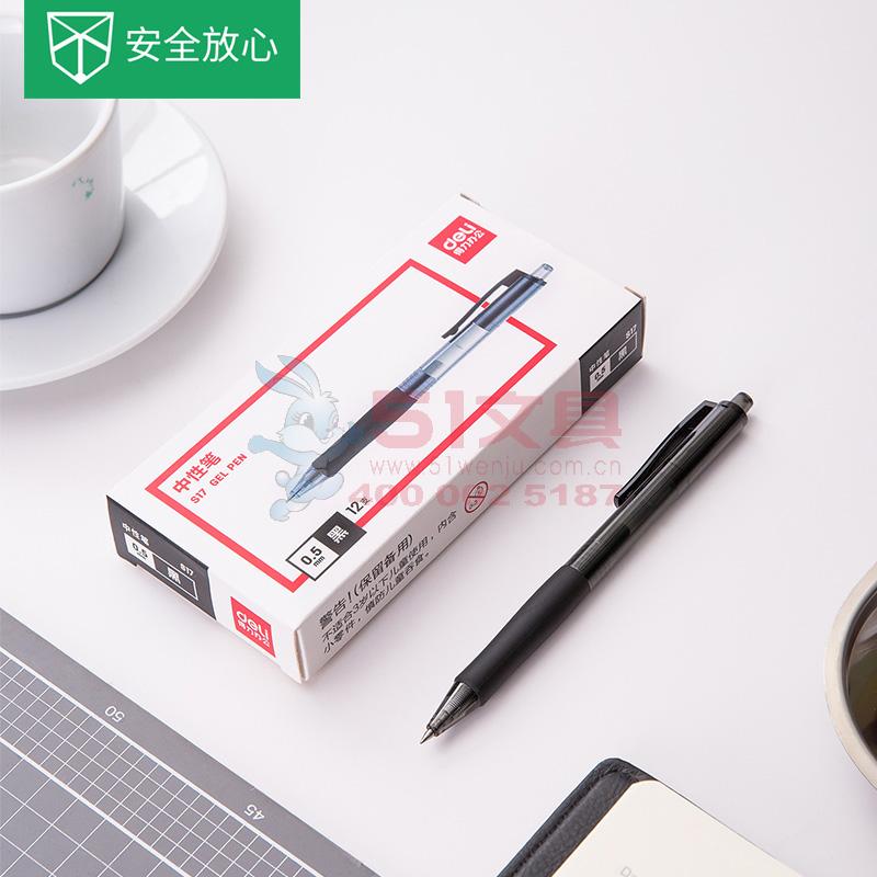 得力s17,0.5mm 按动中性笔水笔签字笔进口油墨办公书写...