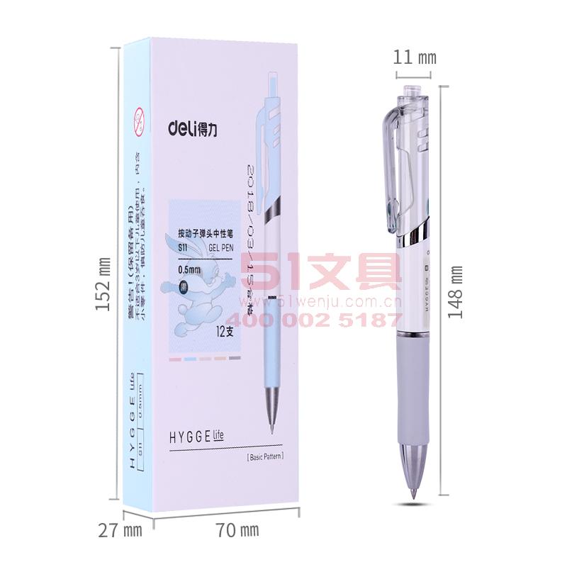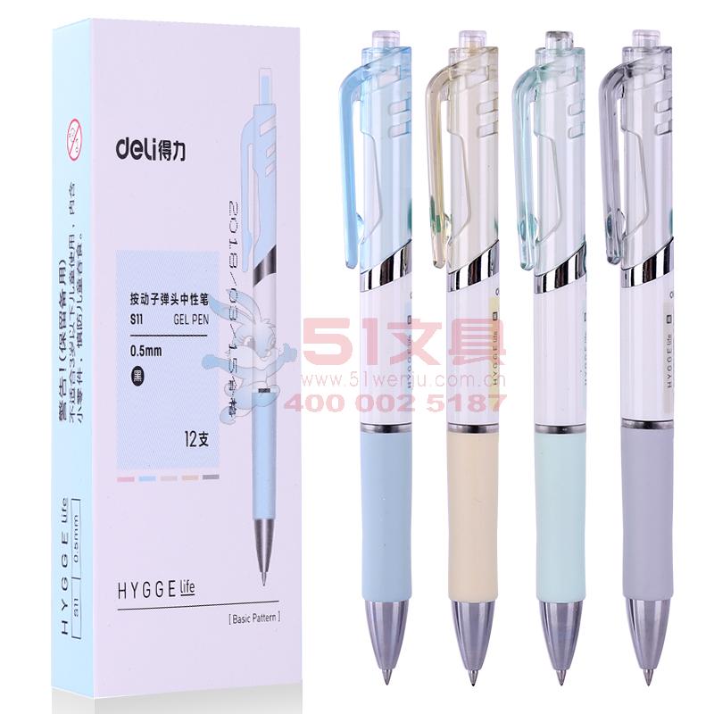 得力S11,0.5mm按动中性笔(12/144/1728)混...