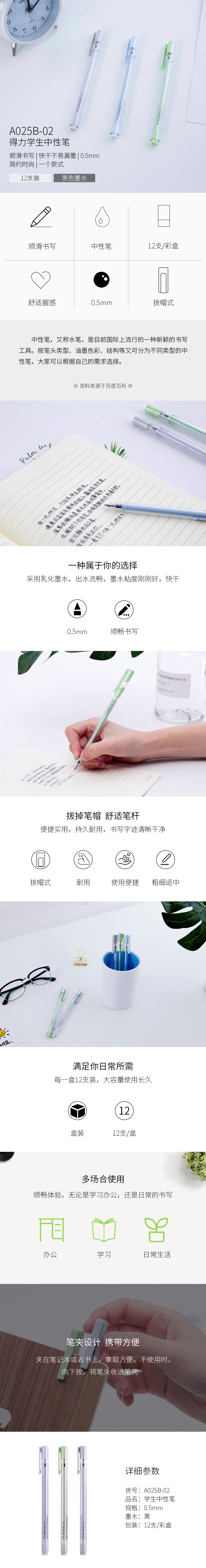 得力A025B-02,0.38学生中性笔,水性笔碳素笔签字笔...