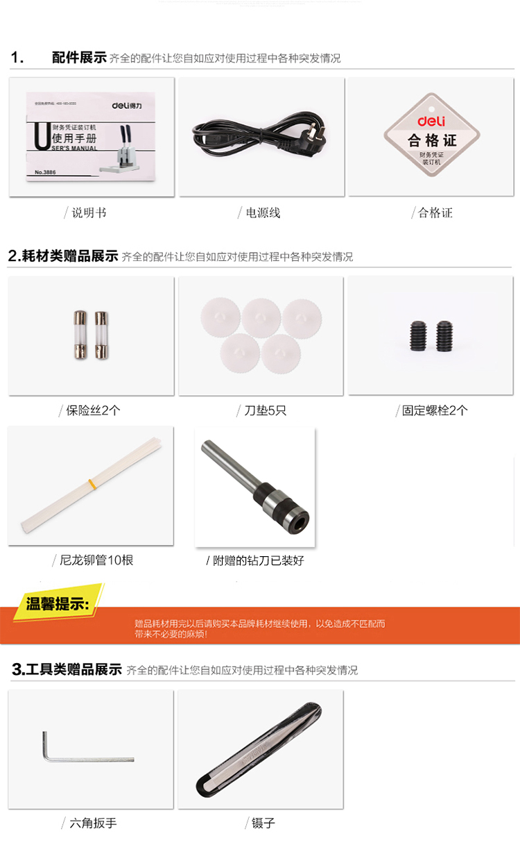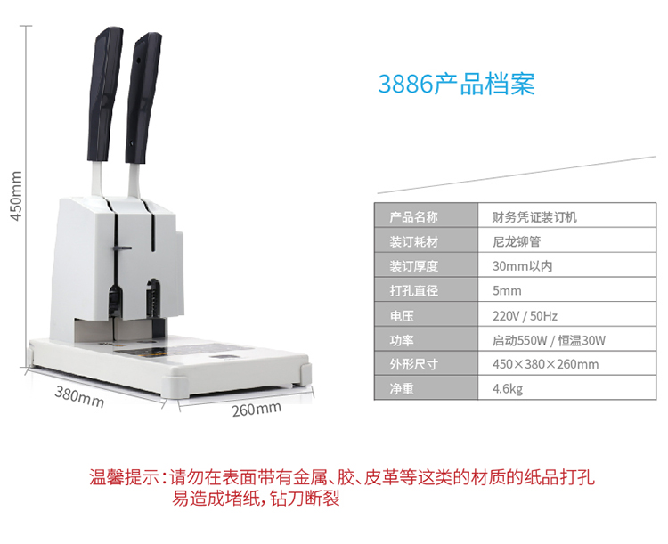 得力3886,升级版财务凭证打孔机 手动单据装订机