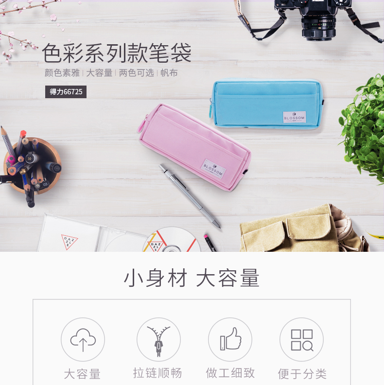 得力66725,简约时尚笔袋,多功能笔袋/文具盒