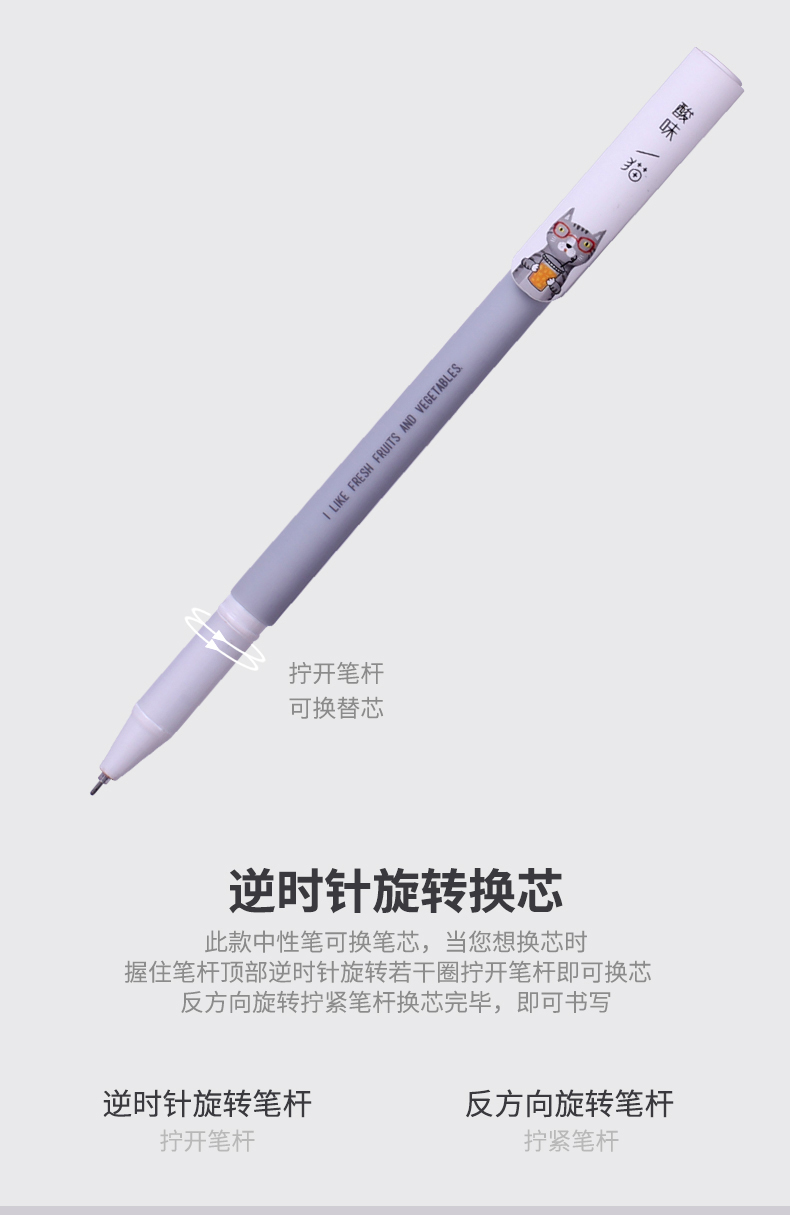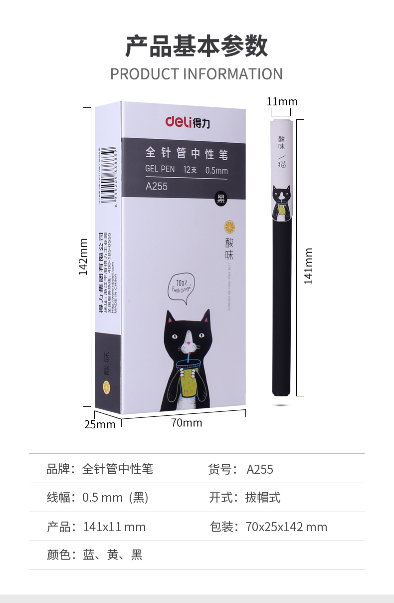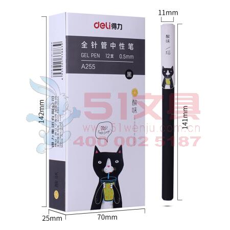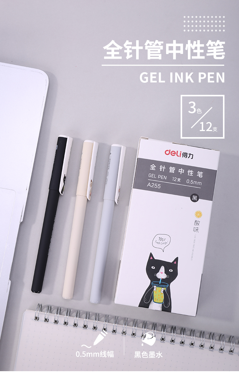 得力A255,0.5mm酸味猫学生中性笔签字笔水笔