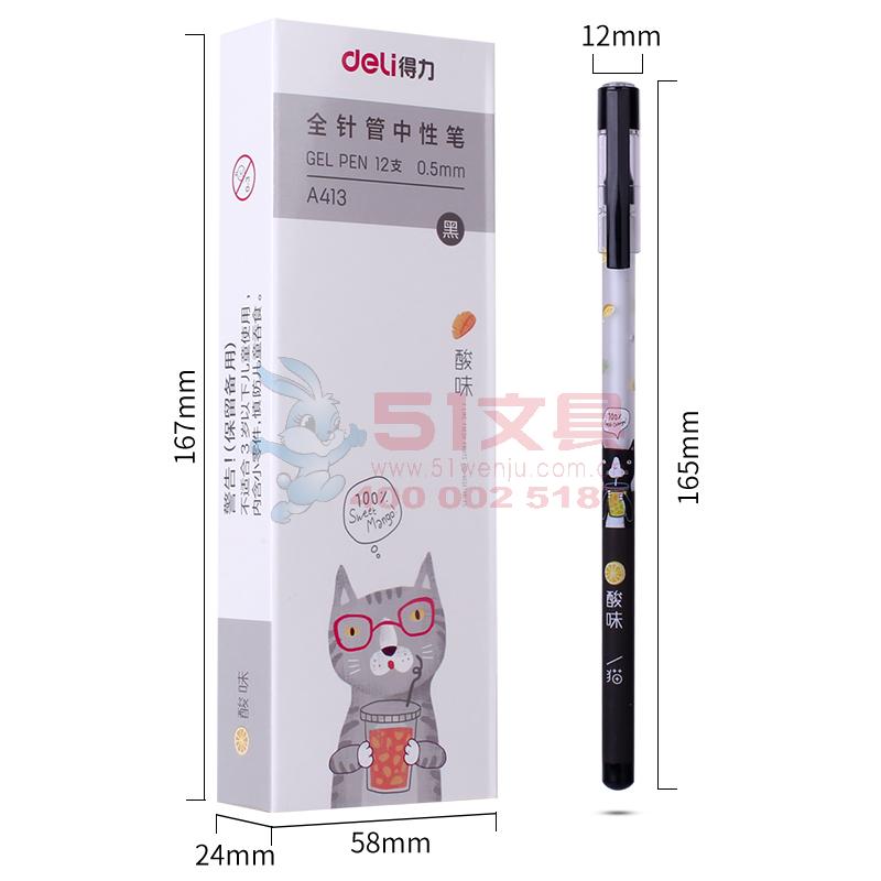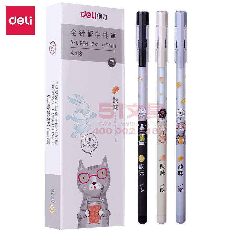 得力A413,0.5mm酸味猫学生中性笔签字笔水笔全针管