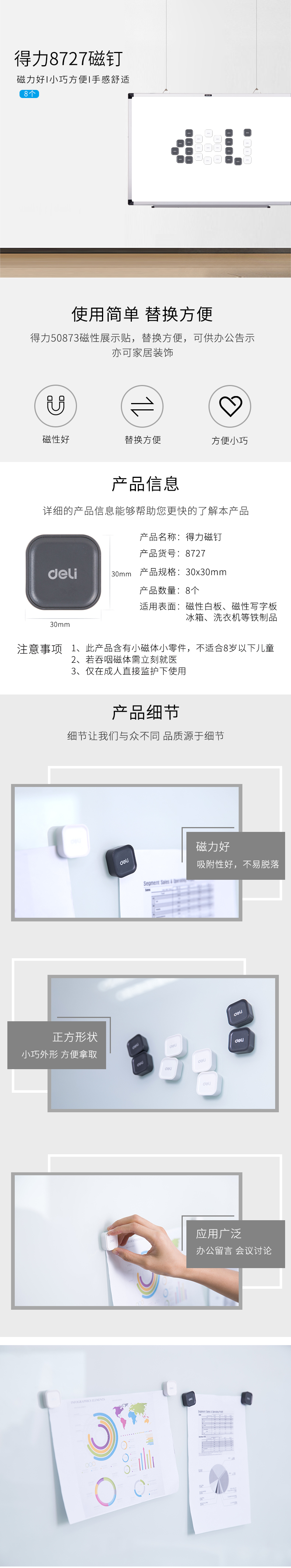 得力8727,磁钉磁铁贴/磁扣适合白板写字板冰箱洗衣机磁贴8...