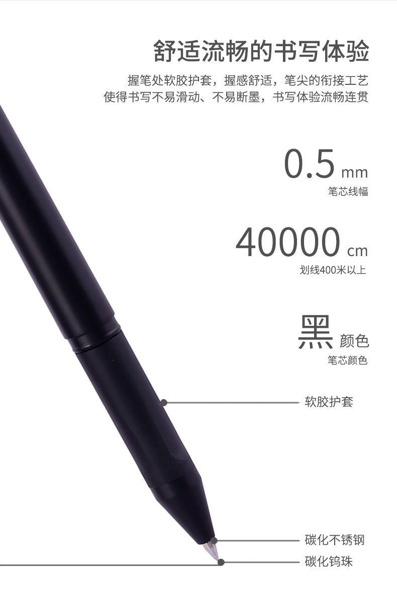 得力A15,乐素办公0.5mm黑色中性笔 子弹头水笔签字笔