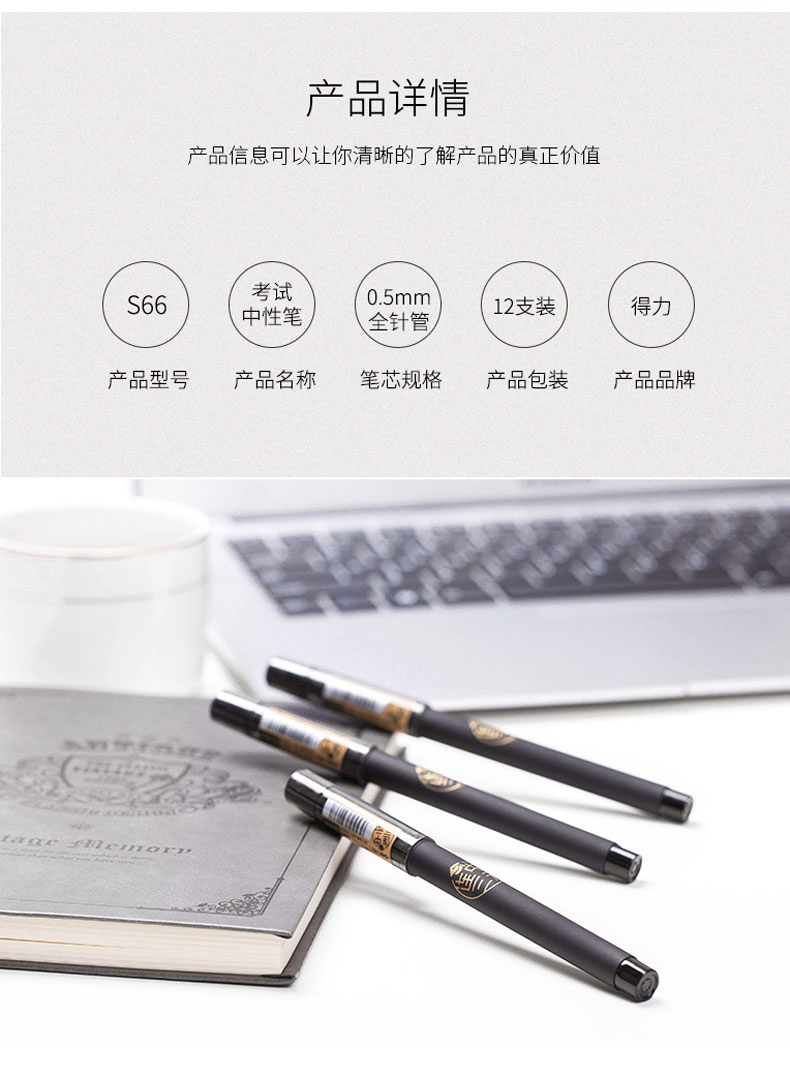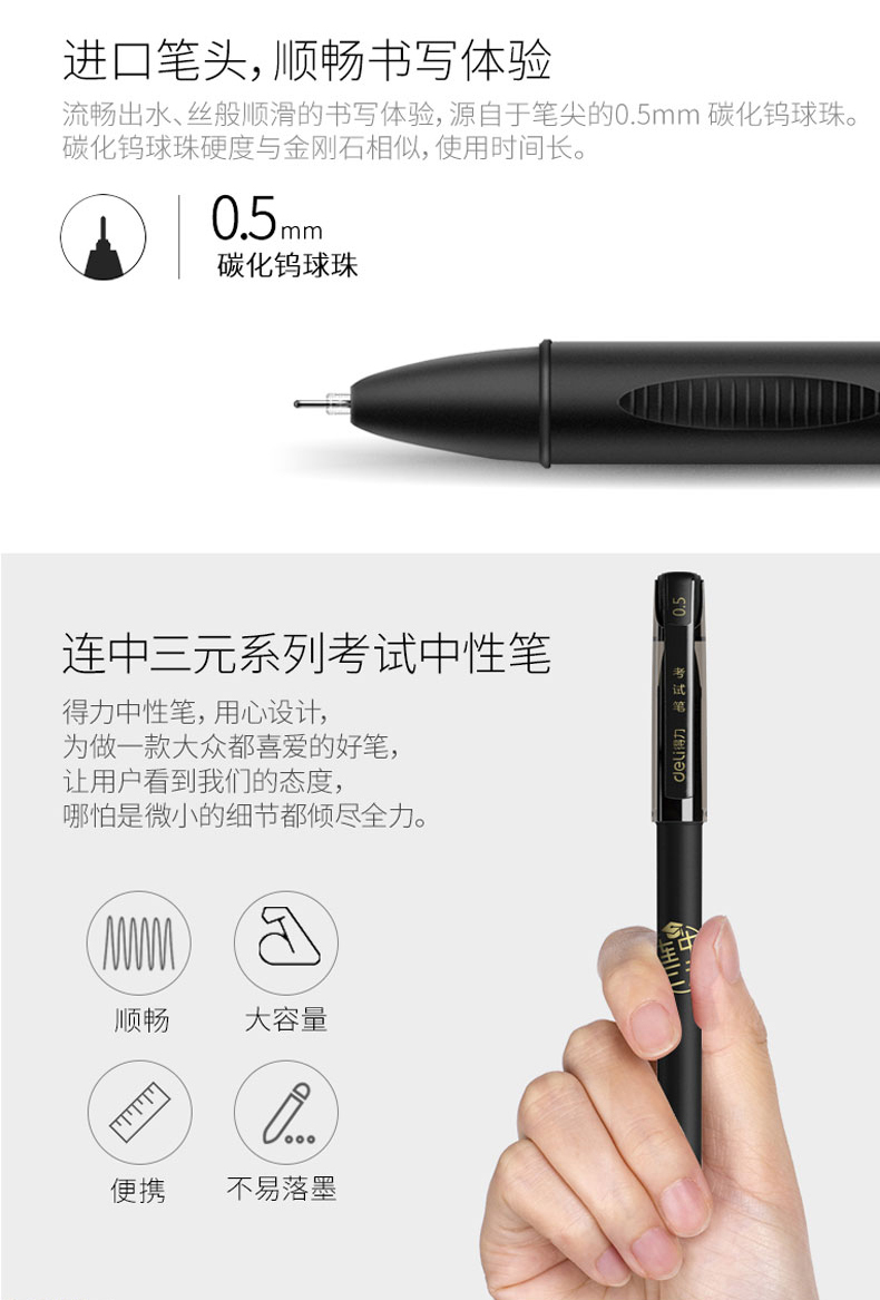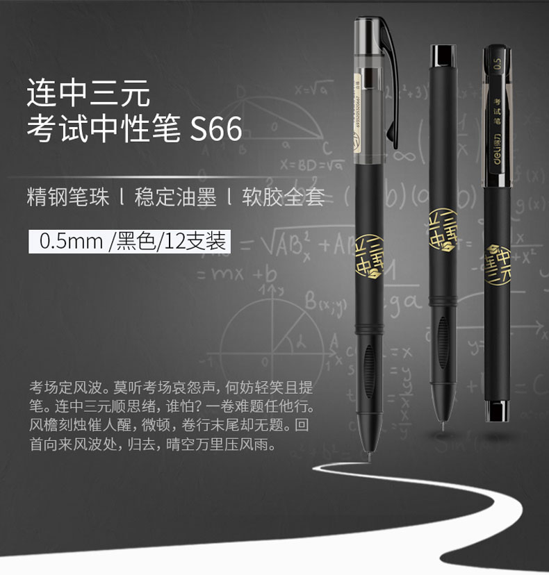 得力S66,0.5考试中性笔/水笔 碳素黑油墨笔 签字笔0....