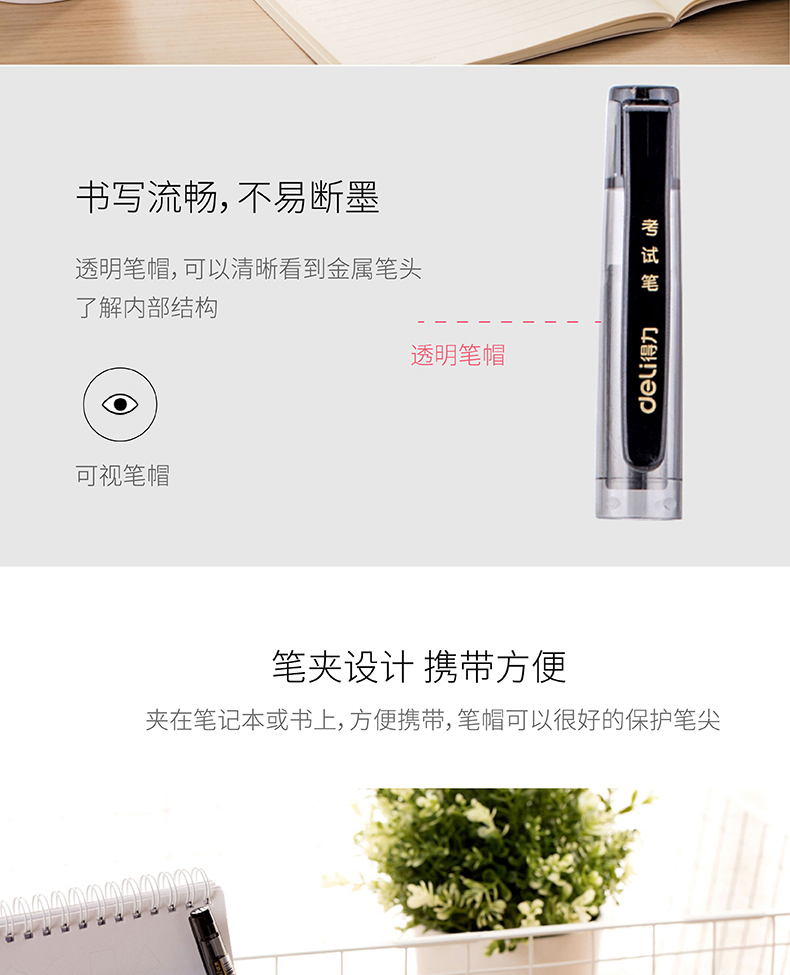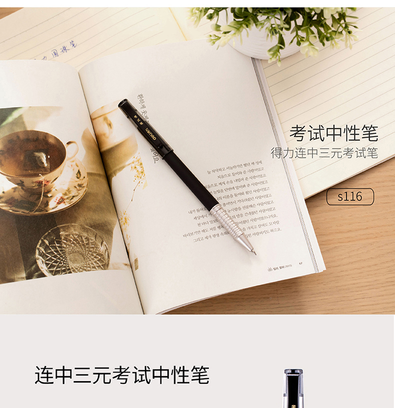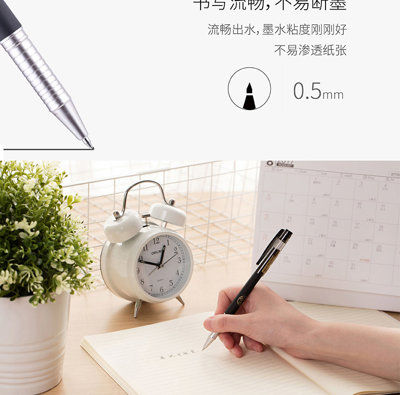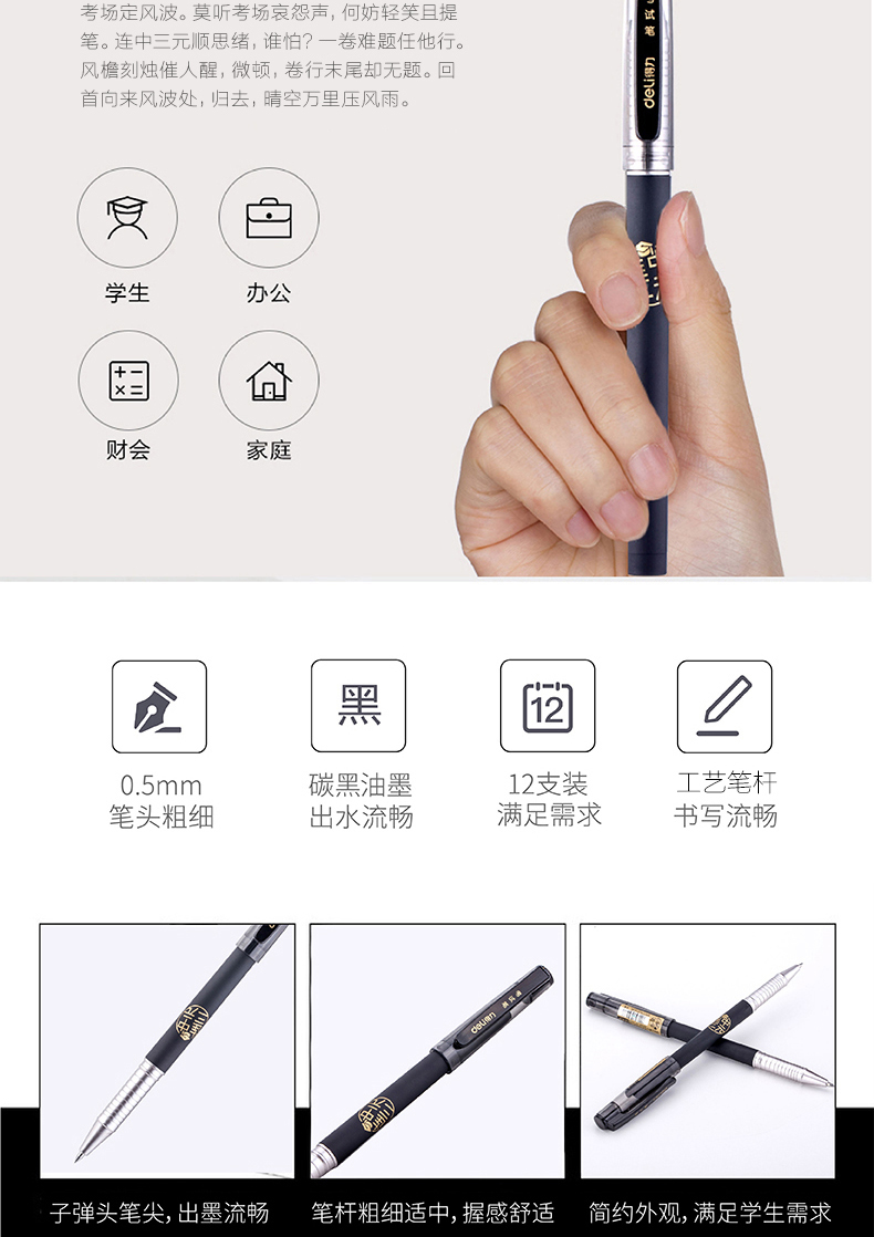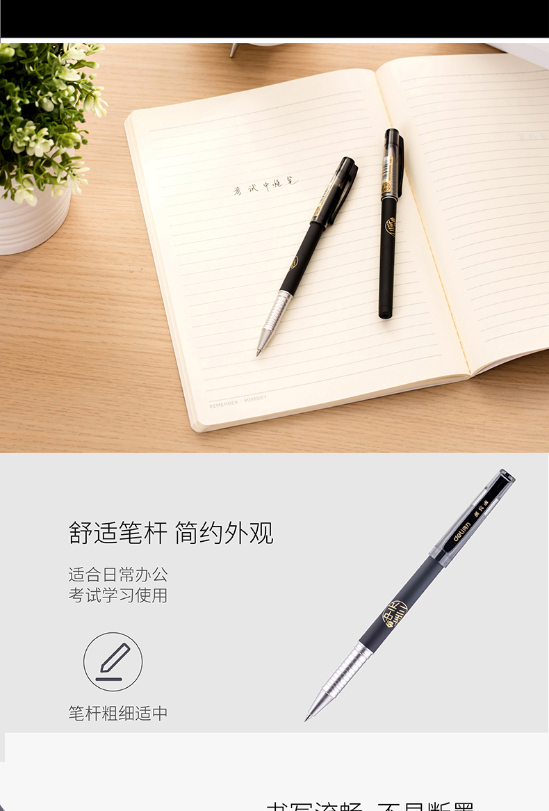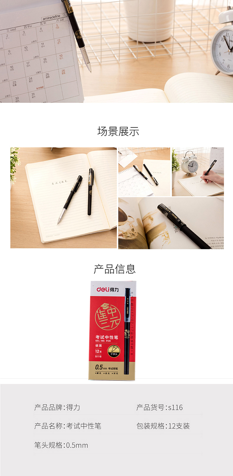 得力S116,连中三元考试笔0.5mm中性笔黑色盒装碳素笔学...