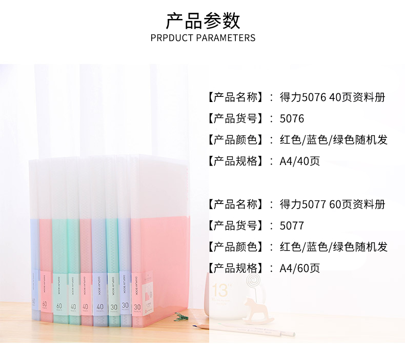得力5038,40页侧入式资料册(1/12/48)A4/A3...