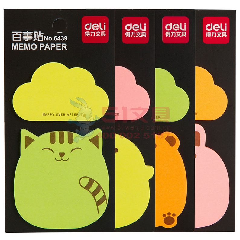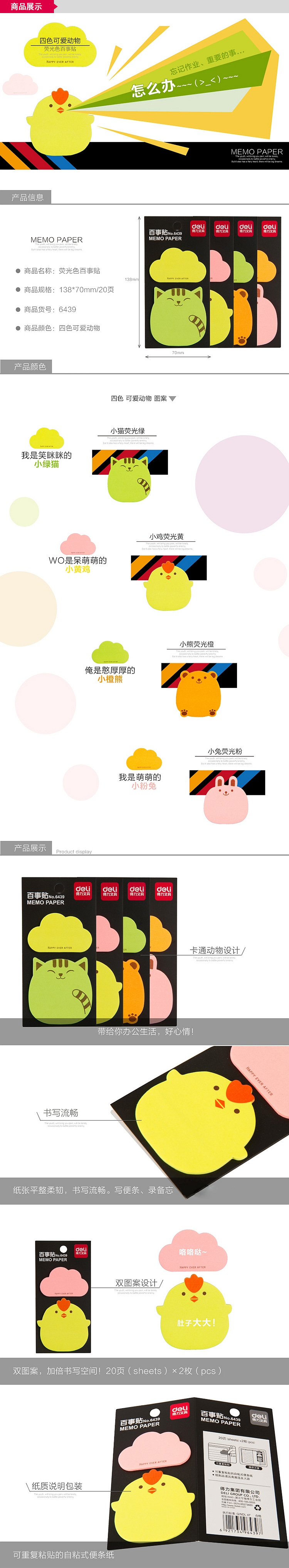 得力6439,荧光百事贴卡通动物告示贴便条纸N次贴便签贴随手...