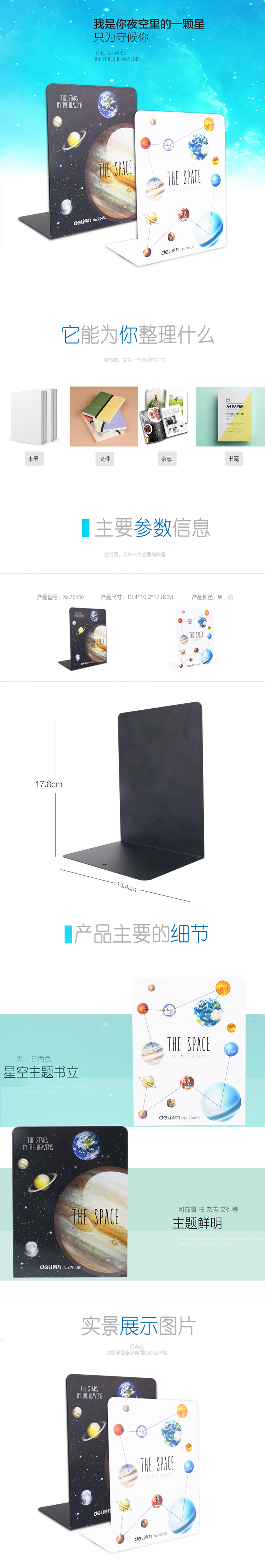 得力70450,书立书夹书靠书挡两片 书立架文具简易桌收纳办...