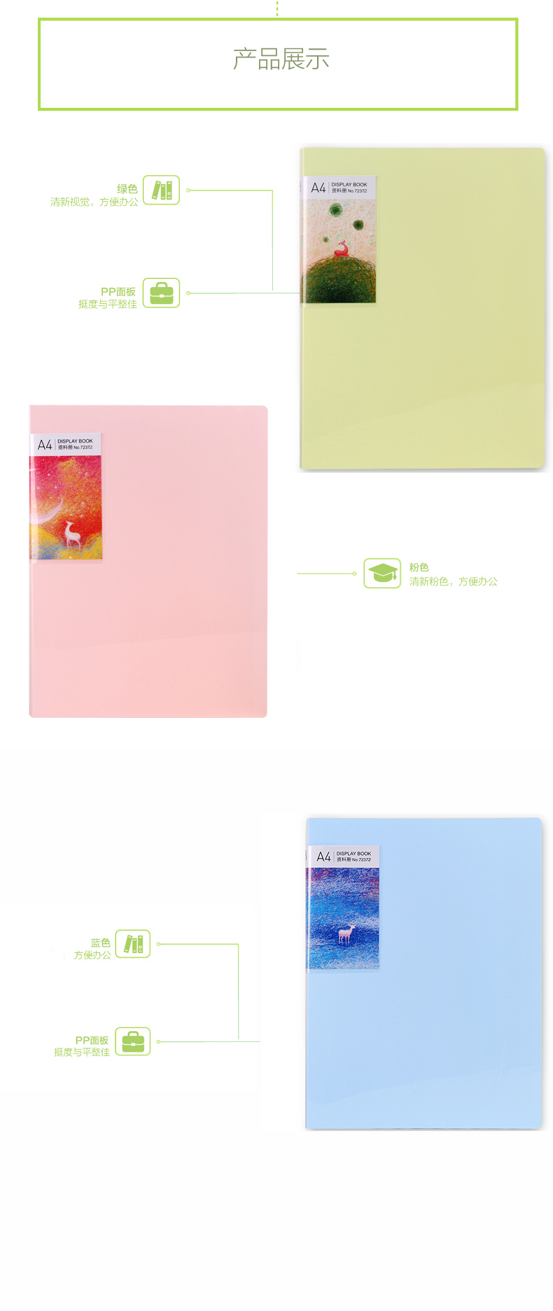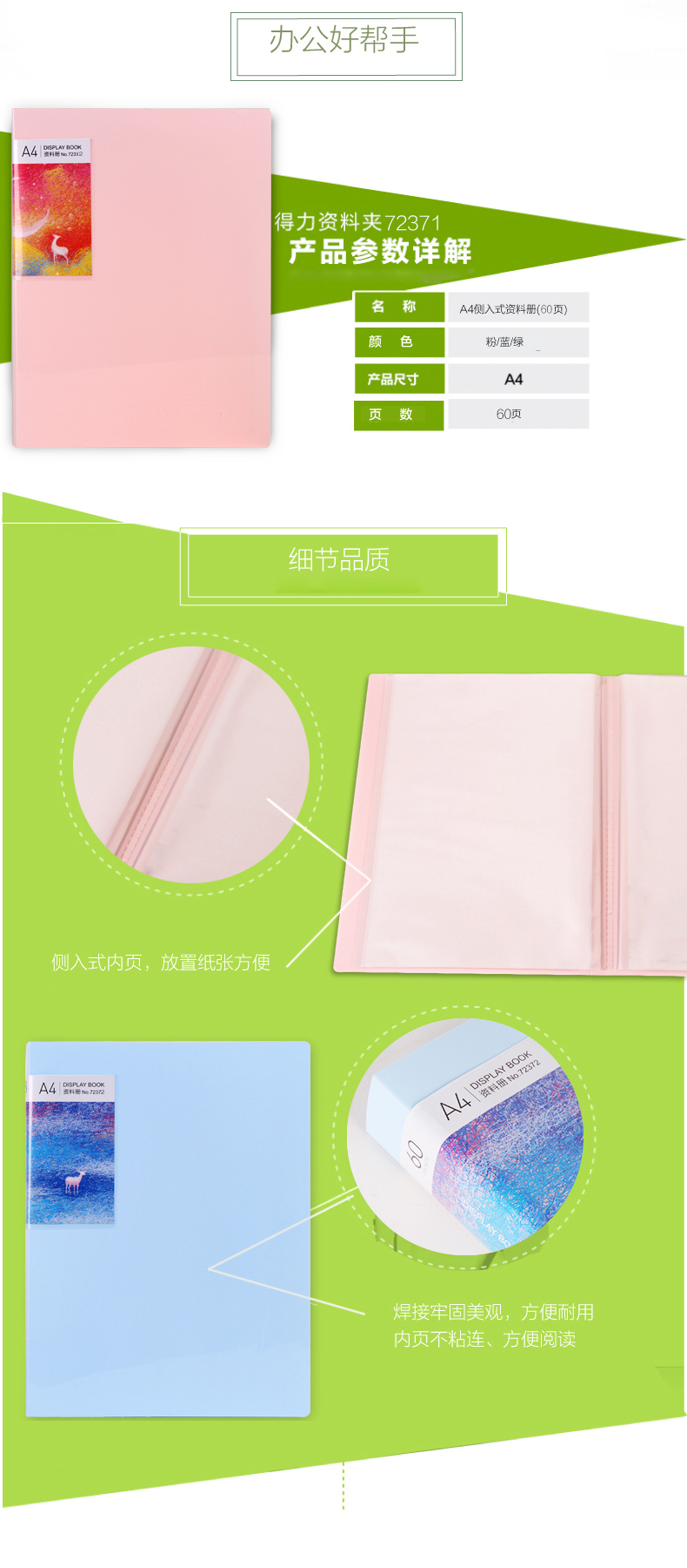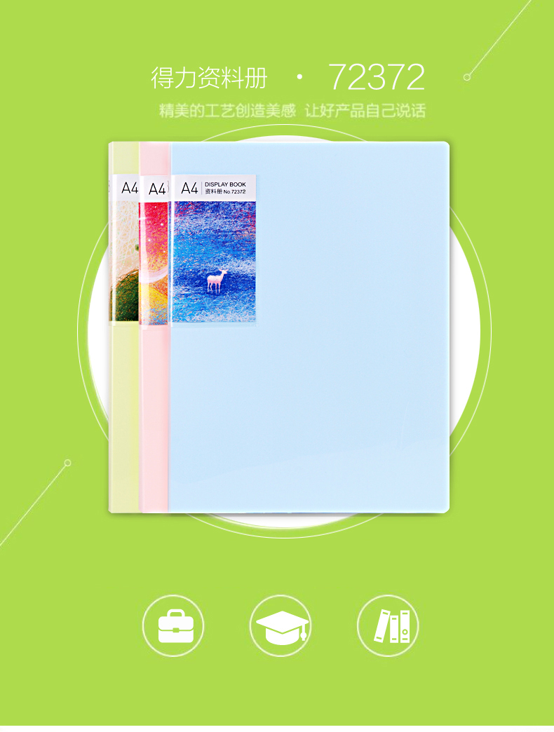 得力72372,寻鹿系列A4侧入式资料册60页文件夹插页试卷...