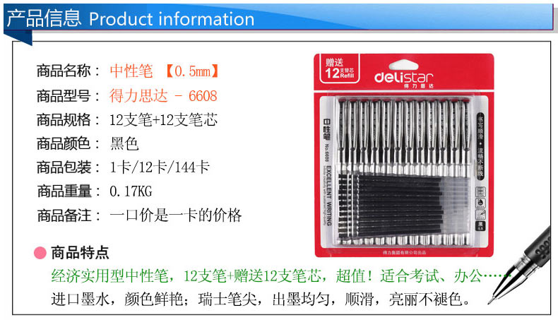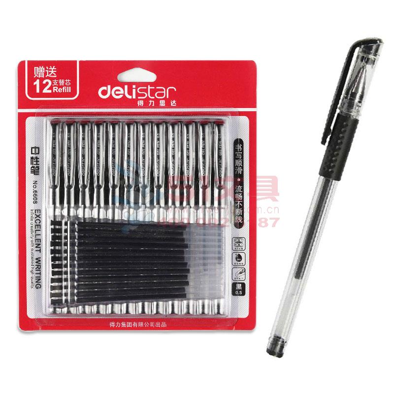 得力6608,0.5mm半针管中性笔针管头办公书写工具盒装签...