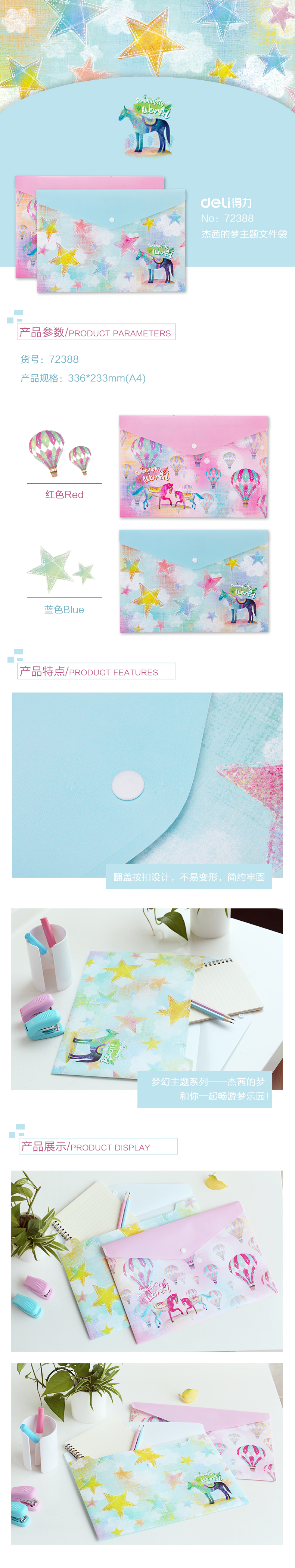 得力72388,文件袋创意可爱卡通文件袋纽扣袋资料袋学生儿童...