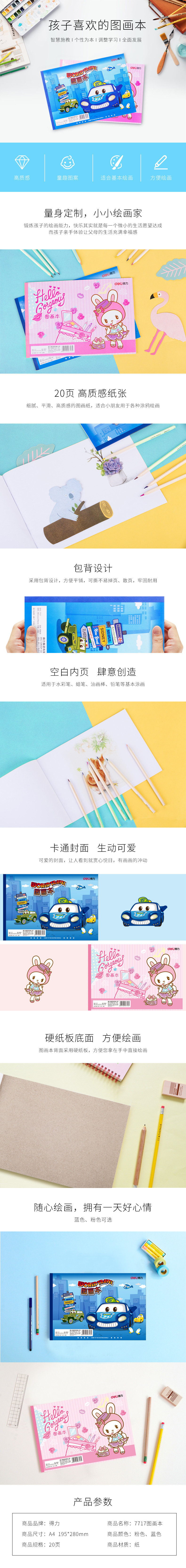 得力7718,B5 20页儿童图画本小学生画画本幼儿园美术绘...