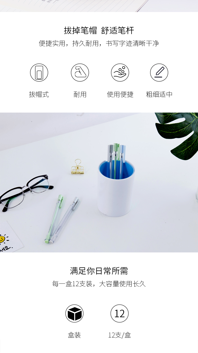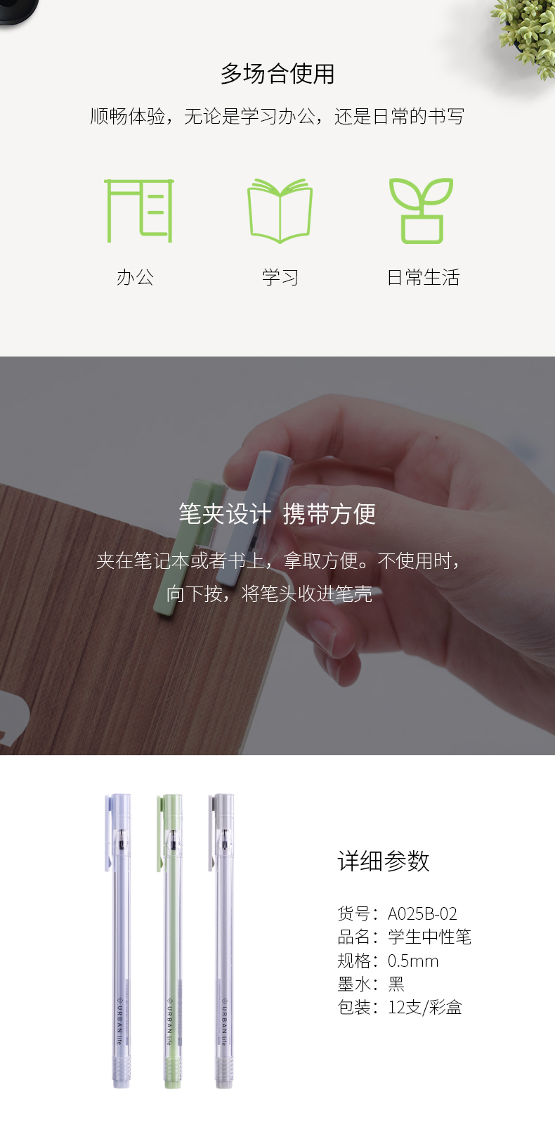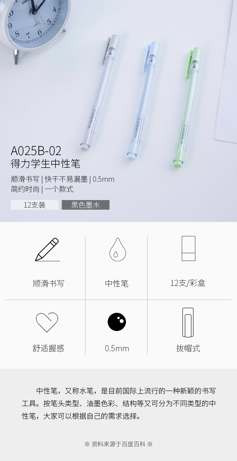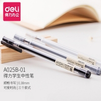 得力A025B-01,0.5mm子弹头黑色中性笔细水笔简约商...