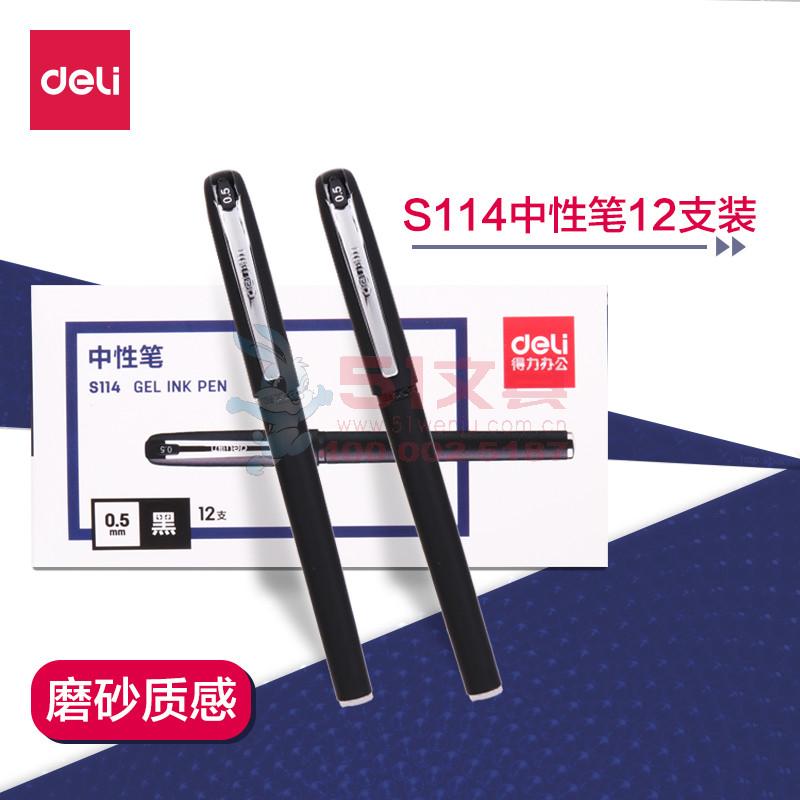 得力S114,中性笔磨砂笔杆水笔签字办公笔进口笔珠0.5mm...
