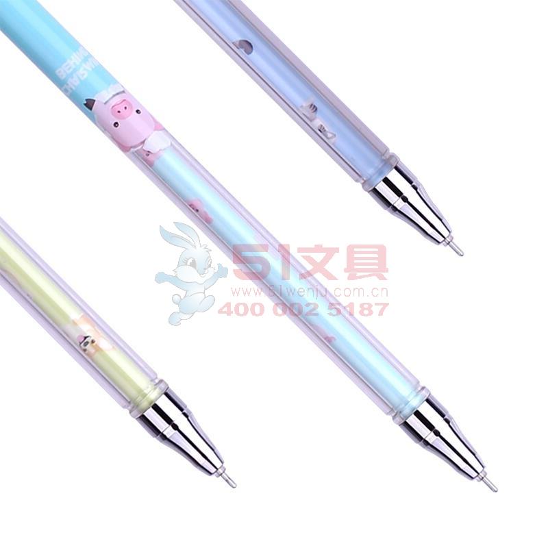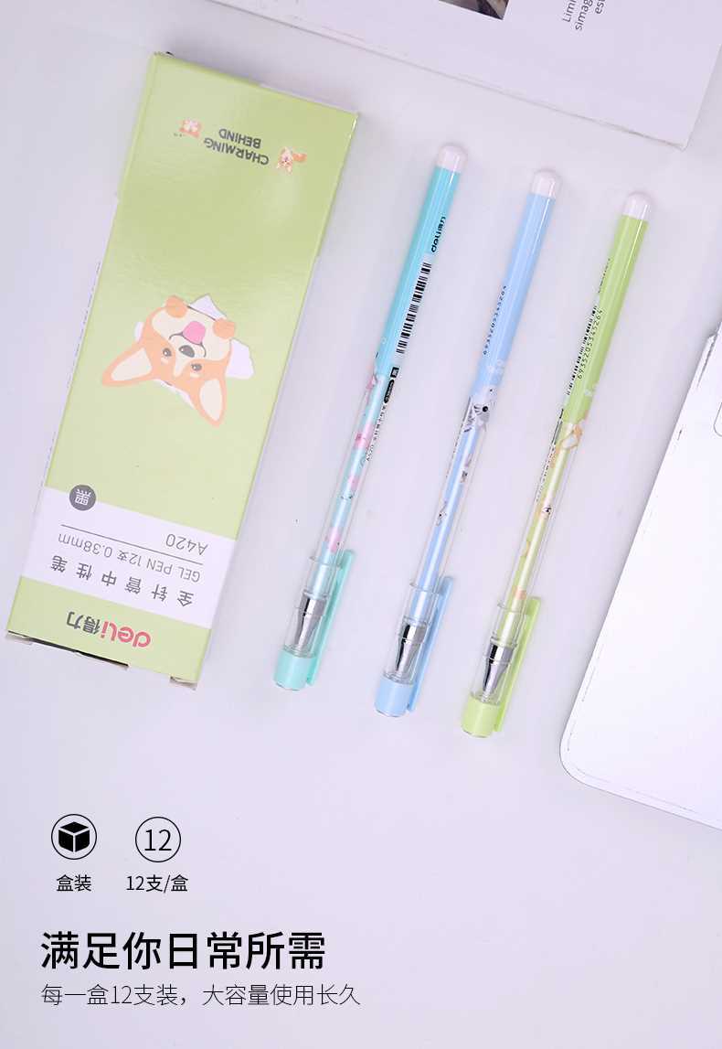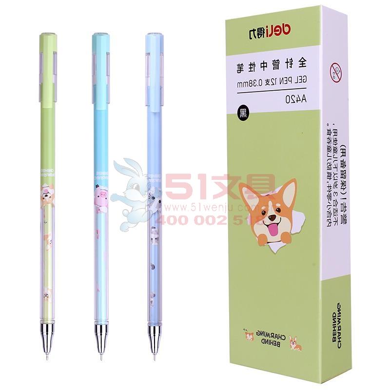 得力A420,萌宠系列0.38mm黑色中性笔 全针管水笔签字...