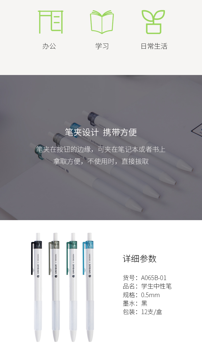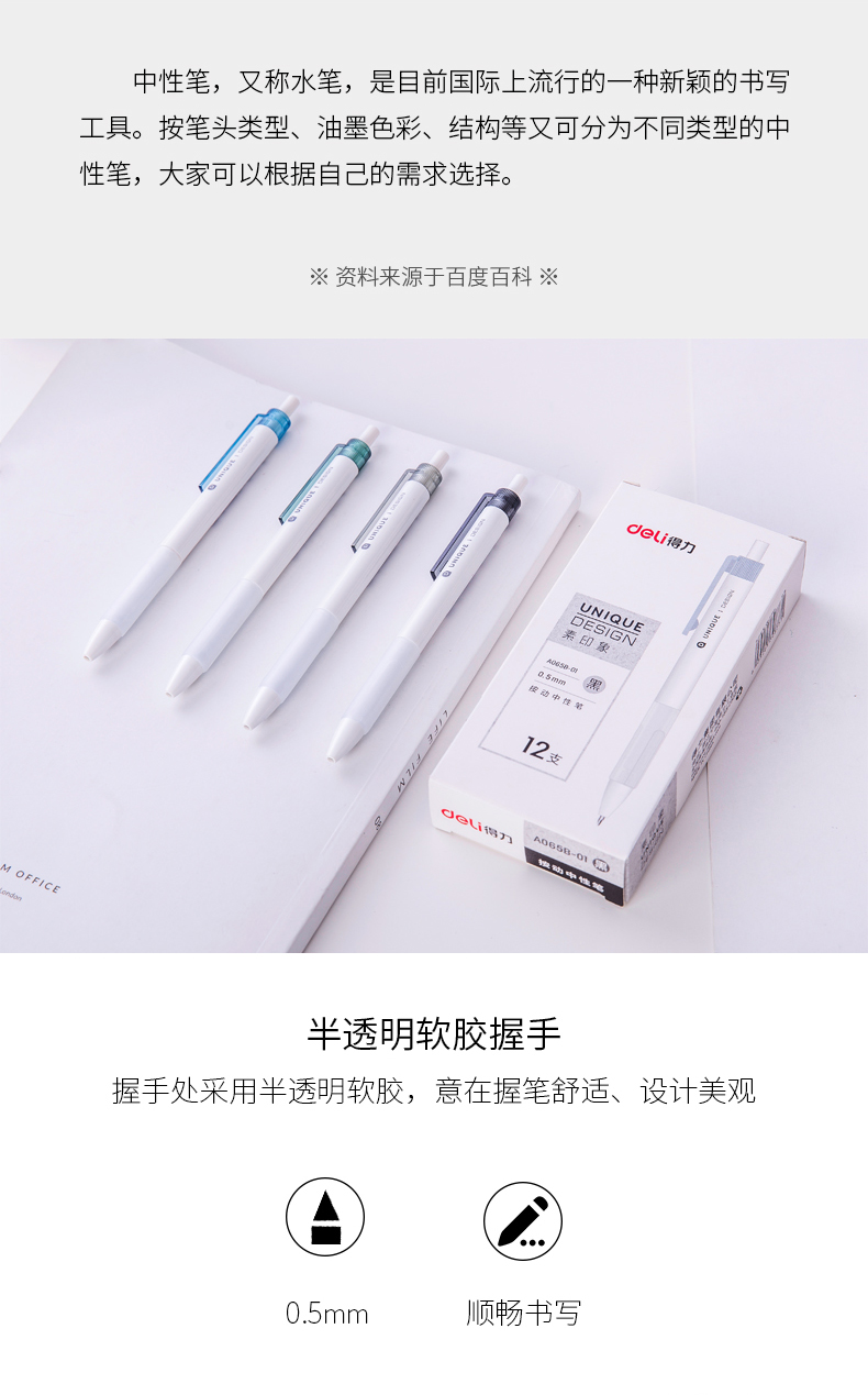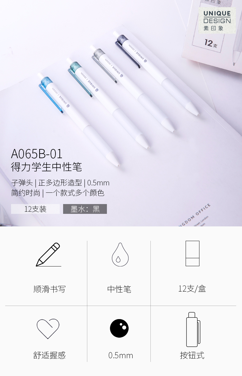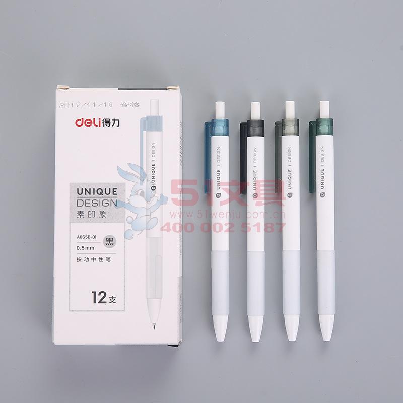得力A065B-01,0.5mm按动中性笔子弹头中性笔水笔签...