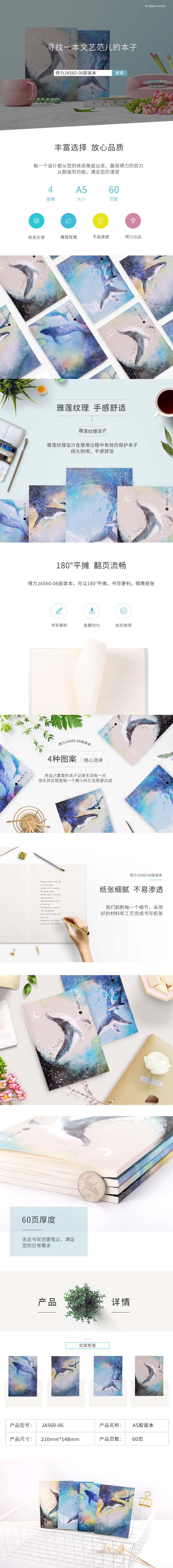 得力JA560,A5胶装本页数60页软面抄本子记事本北冥有鱼