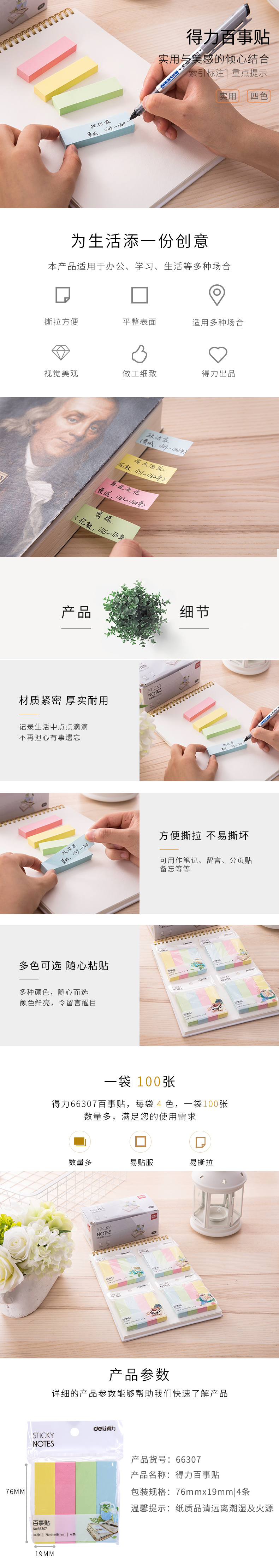 得力66307,便利贴可爱多功能多色小号标签纸N次贴自粘便签...
