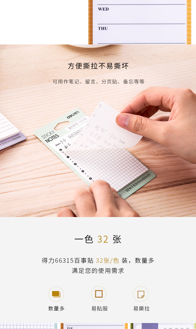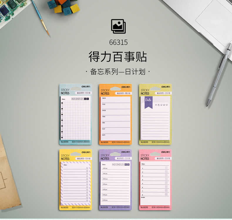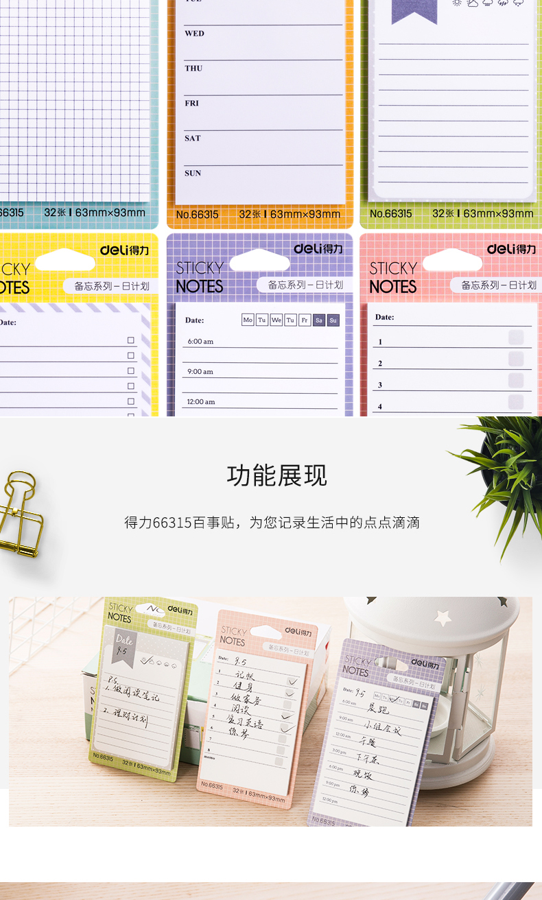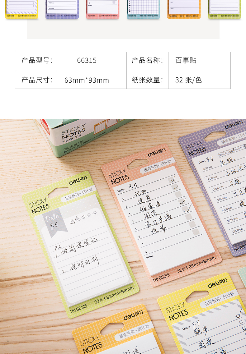 得力66315,百事贴 便利贴32张/色装多功能彩色备忘贴计...