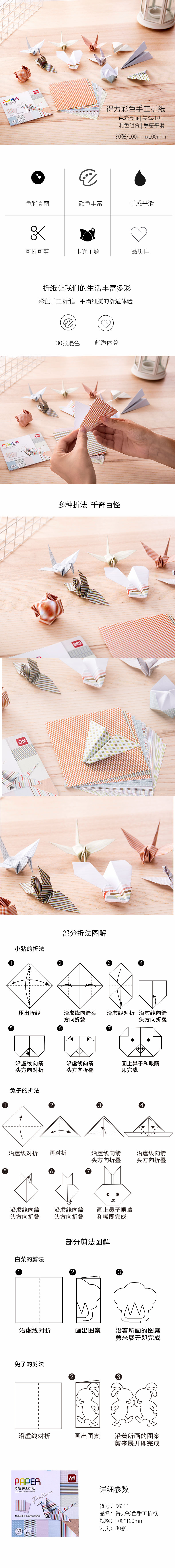 得力66311,彩色手工折纸 卡纸折纸彩纸折纸材料儿童彩色剪...